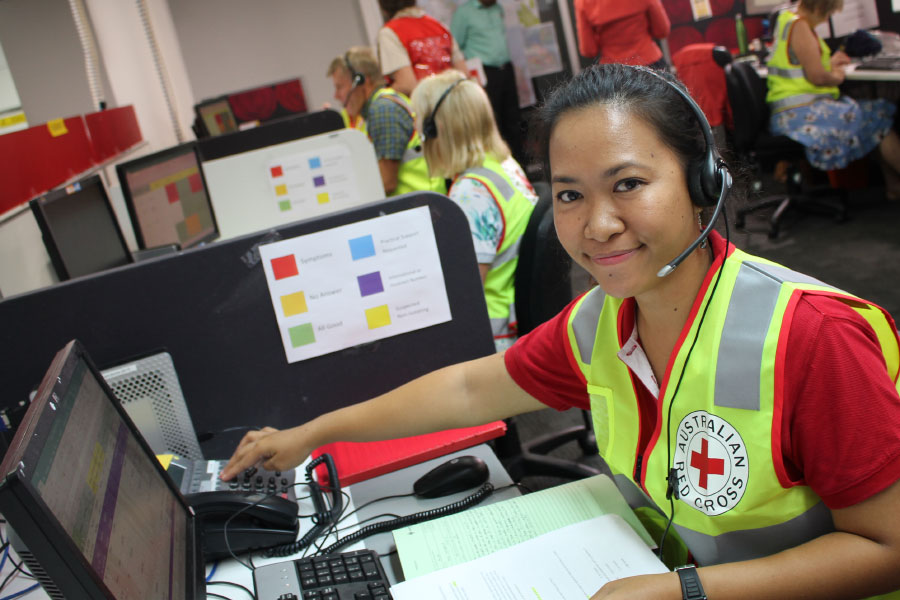 Red Cross staff and volunteers making calls in Brisbane to people in self isolation due to coronavirus during COVID-19. Photo: Susan Cullinan